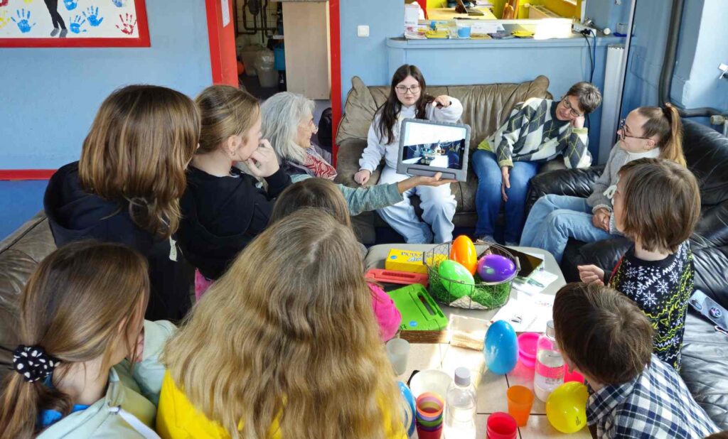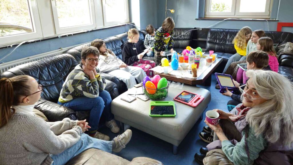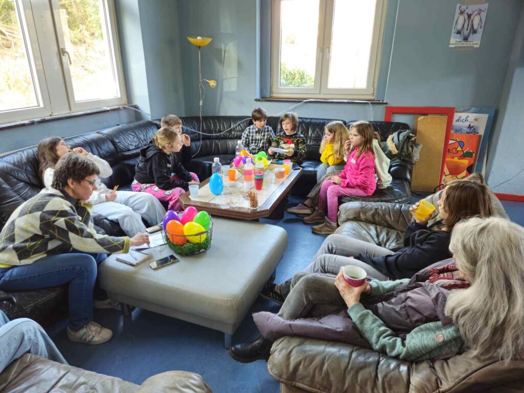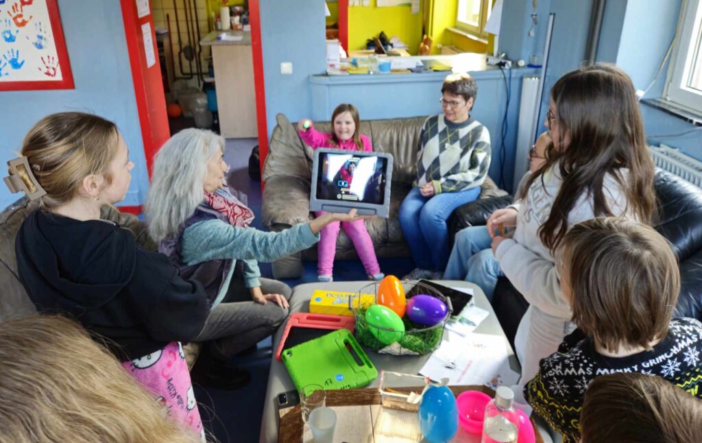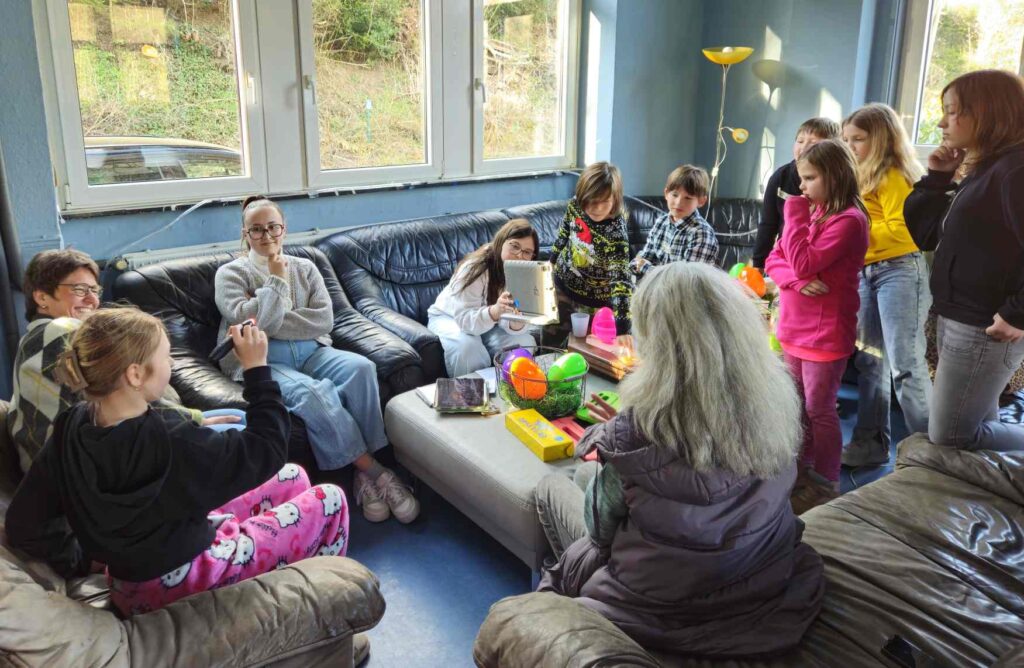 Medienkompetenz war das Thema am Freitagnachmittag vor den Osterferien. Statt Kidstreff, stand im Jugendbahnhof „Ach du dickes Ei…Medienthemen aus dem Ei gepellt“ auf dem Programm. Das kindgerechte Medien-Infotainment für Kids ab 8 Jahre in Kooperation mit dem Kreisjugendschutz wurde angeboten von Michaela Weiß von Medien-Leuchtturm ( www.medien-leuchtturm.de ). Sie setzte sich gemeinsam mit den Kindern mit wichtigen Themen im kindgerechten Umgang mit Internet und Handy auseinander. Diese fanden die Kinder als Aufgabenzettel mit spannenden Inhalten in großen Ostereiern. So gab es Überraschungseier mal anders. Egal ob Cyber-Mobbing, Fake News, KI, Apps, Wichtige Passwörter, Cyber-Grooming, oder andere Jugendschutzthemen, gemeinsam wurde im kindgerechten Austausch überlegt, wie ein gutes Miteinander funktionieren kann und wie ein geschützter, sicherer Umgang mit den Medien möglich ist. Jede und jeder trug seine Ideen bei, so auch bei verschiedenen Spiele-, Unterhaltungs- und Lern-Apps, die die Kinder gemeinsam auf Tabletts ausprobierten.