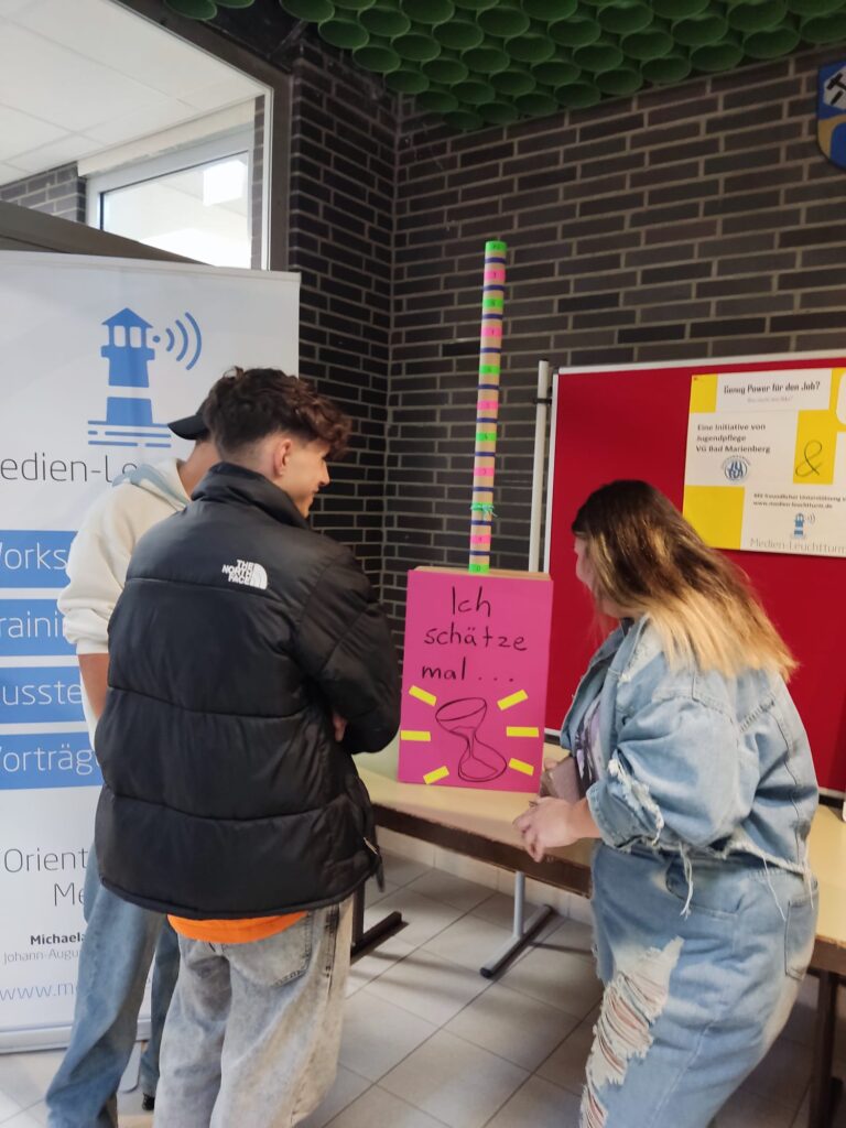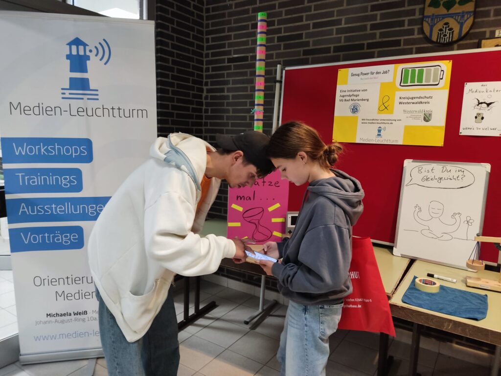 Mit dieser Fragestellung wendete sich die Jugendpflege der Verbandsgemeinde Bad Marienberg gemeinsam mit Alexander Hötten von Medien-Leuchtturm unterstützt durch den Kreisjugendschutz an die Besucher und Besucherinnen der diesjährigen Berufsinformationsbörse (BIB) im VG-Schulzentrum.