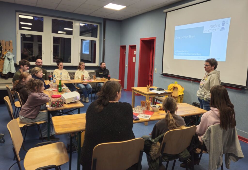 Der Familien-Bingo-Abend „Fit für Smartphone & Co“ am 6.11.2025 im Jugendbahnhof in Kooperation mit dem Kreisjugendschutz stieß auf großes Interesse bei Eltern und Kindern.